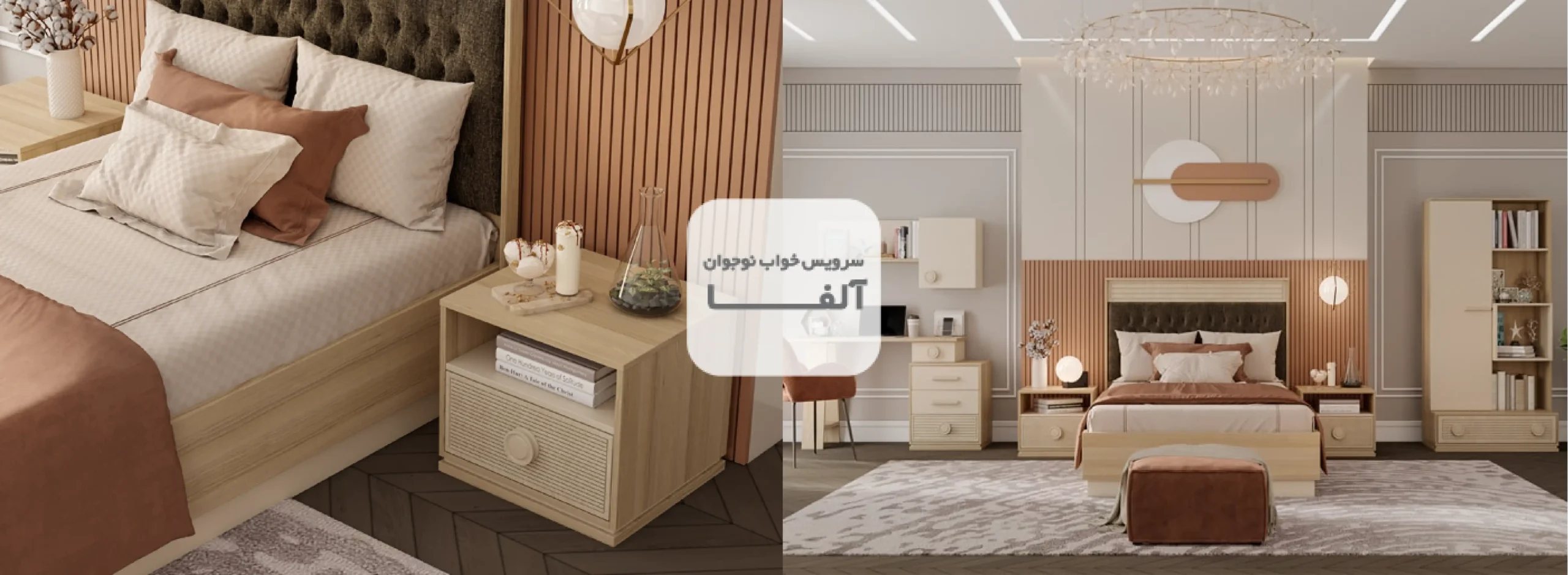 سرویس خواب نوجوان آلفا، ترکیبی از راحتی، زیبایی و کاربردی بودن برای اتاق فرزند شما.