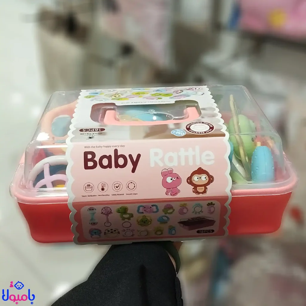 شامل ۱۸ تیکه (۱۷ مدل جغجغه + جعبه صندقی محکم)