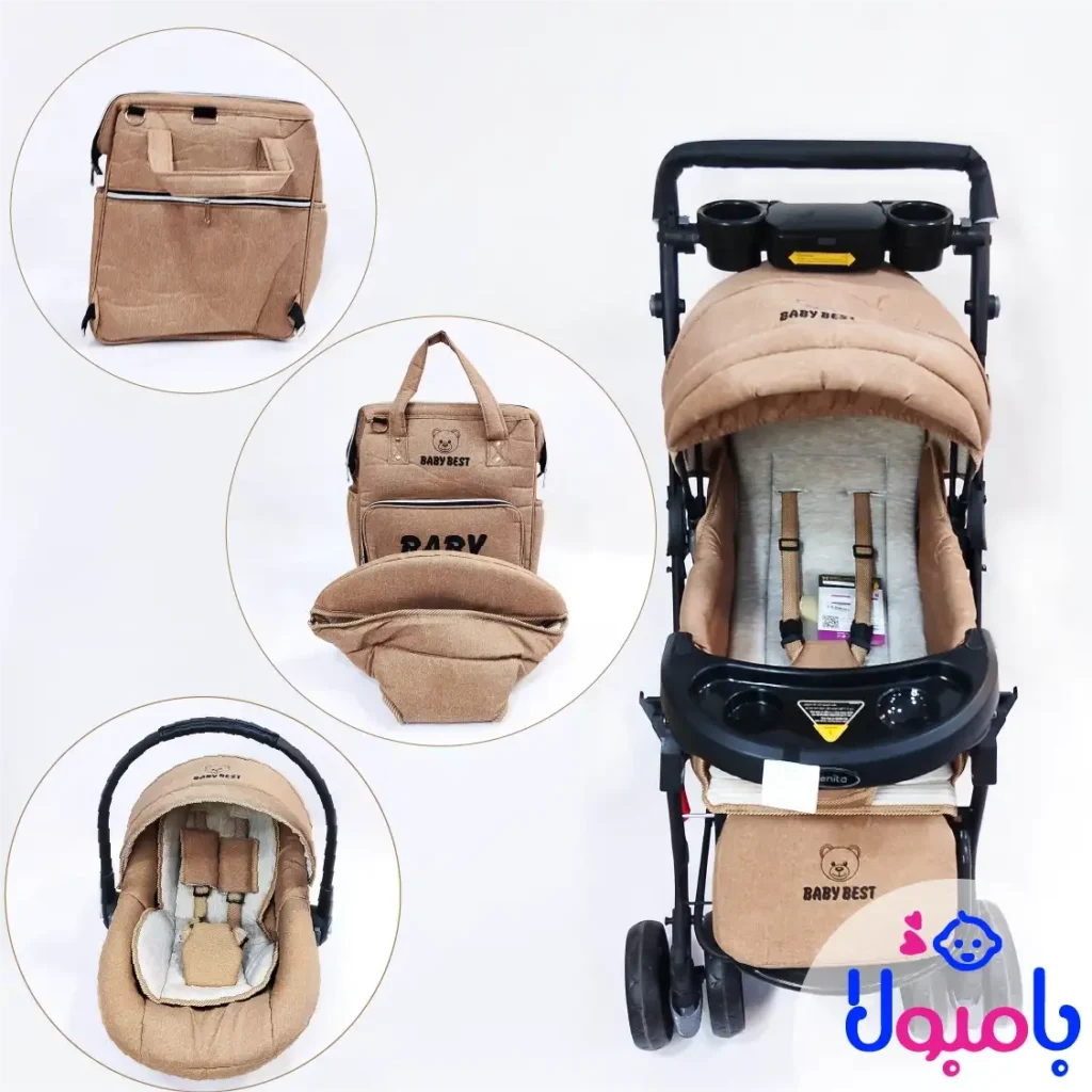ایمنی بالا: طراحی ارگونومیک و استفاده از مواد با کیفیت باعث میشود که کالسکه بیبی بست گزینهای ایمن و قابل اعتماد برای نوزاد شما باشد.