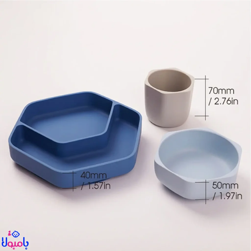 ظرف غذای کودک He or She با تقسیمبندی هوشمند، جنس ۱۰۰٪ سیلیکونی و طراحی ارگانیک، مناسب کودکان بالای ۶ ماه و شستوشوی آسان.