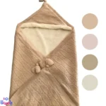 ابعاد تقریبی ۹۵×۹۵ تا ۱۰۰×۱۰۰ سانتیمتر، باعث میشود کودک بهطور کامل در آن پیچیده شود و حس امنیت و آرامش بیشتری داشته باشد. طراحی این پتو بسیار شیک و زیباست و بهعنوان یک انتخاب لاکچری برای هدیه سیسمونی یا استفاده روزمره، گزینهای بینظیر محسوب میشود.