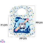 جواب: رویه مخمل نرم و پشت پیشبند ضد آب است، برای راحتی کودک و محافظت لباسها طراحی شده.